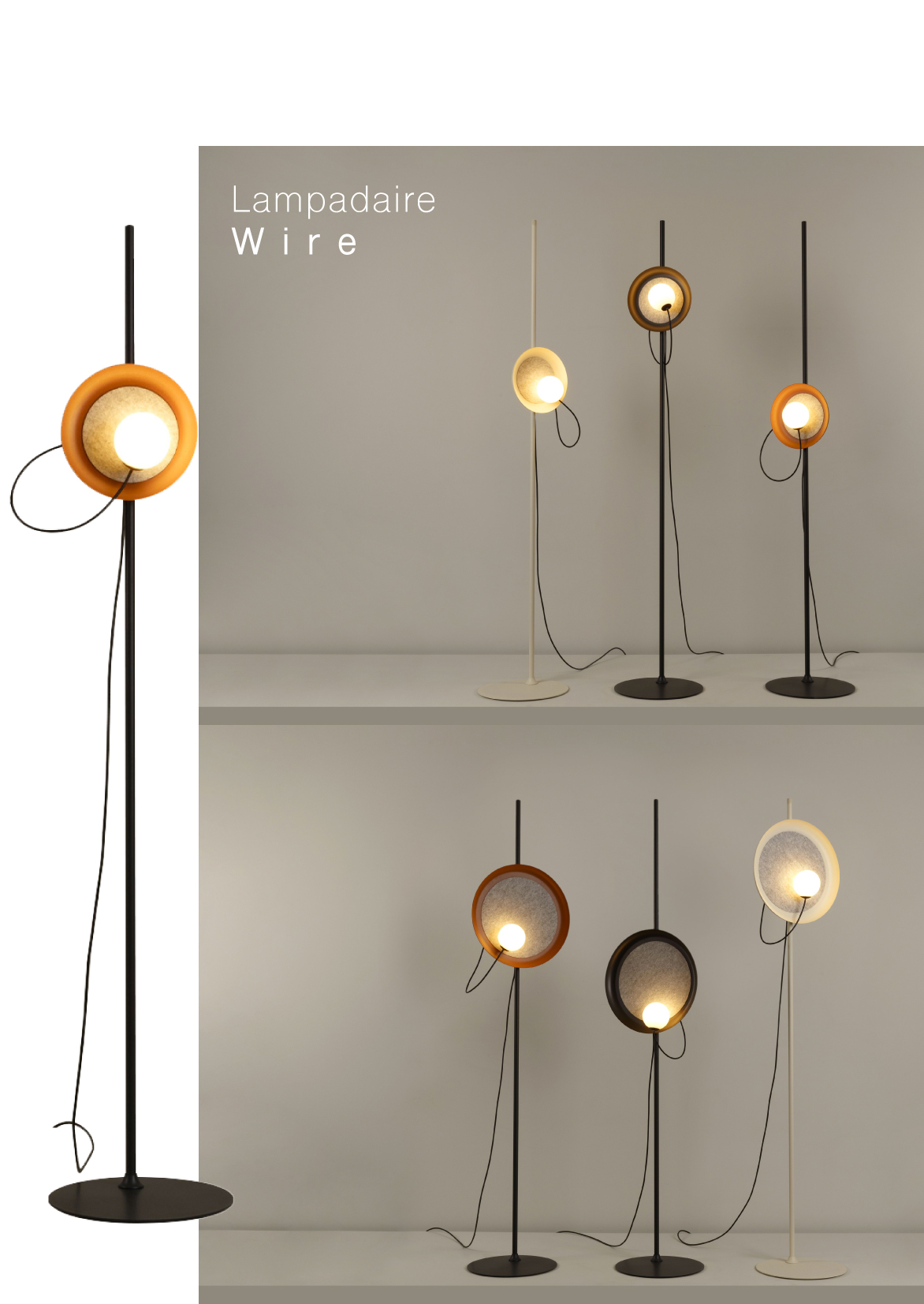 | Cette collection de luminaires joue avec le fil conducteur entre l’abat-jour en verre et l’abat-jour traditionnel. L’abat-jour en verre se déplace légèrement sur le revêtement de l’abat-jour traditionnel, qui agit à son tour comme un isolant acoustique. La partie en verre de l’abat-jour est fixée à la partie traditionnelle par le biais d’un aimant qui crée un champ magnétique subtil. Ce luminaire est disponible en trois couleurs et en versions : suspendue, lampadaire et applique murale. Les différentes couleurs et versions le rendent parfait pour les espaces où l’on veut générer du rythme et du dynamisme. |