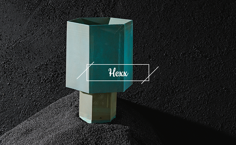 Hexx en tôle d'acier microperforée et Soft Power en tissu qui rappelle le denim délavé.