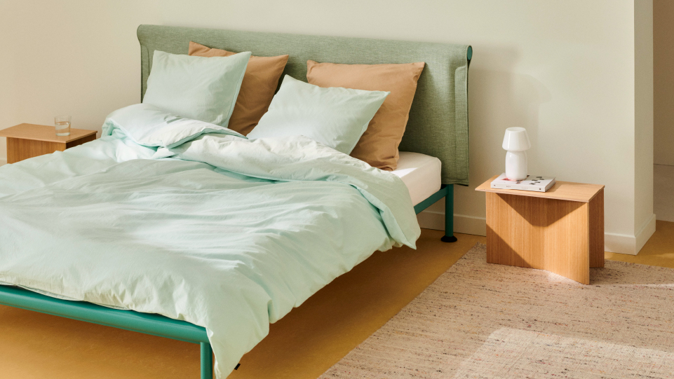 Développé pour HAY par Shane Schneck, Tamoto Bed est conçu dans un souci de multifonctionnalité, ce qui le rend facile et intuitif à intégrer dans un style de vie moderne. Tamoto est influencé par la qualité drapée des manches de kimono, qui a inspiré l'utilisation innovante par Shane du pliage du tissu sur le cadre du lit. La tête de lit douce et drapée est contrebalancée par le cadre en tube d'acier aux dimensions généreuses, créant un hybride lit-canapé contemporain et confortable qui n'est pas destiné exclusivement au sommeil, mais aussi comme base pour lire, travailler ou regarder la télévision et d'autres activités. Avec une conception emballée à plat et facile à assembler, une housse de tête de lit amovible et des matériaux recyclables, la fonctionnalité a été prise en compte à chaque étape du processus de conception. Disponible dans une variété de tailles et de textiles doux sélectionnés, Tamoto est un lit polyvalent qui s'adapte à la plupart des styles de chambre et de design. HAY recommande d'utiliser des lattes de lit standard et des matelas standard avec le lit Tamoto pour une solution complète optimale.