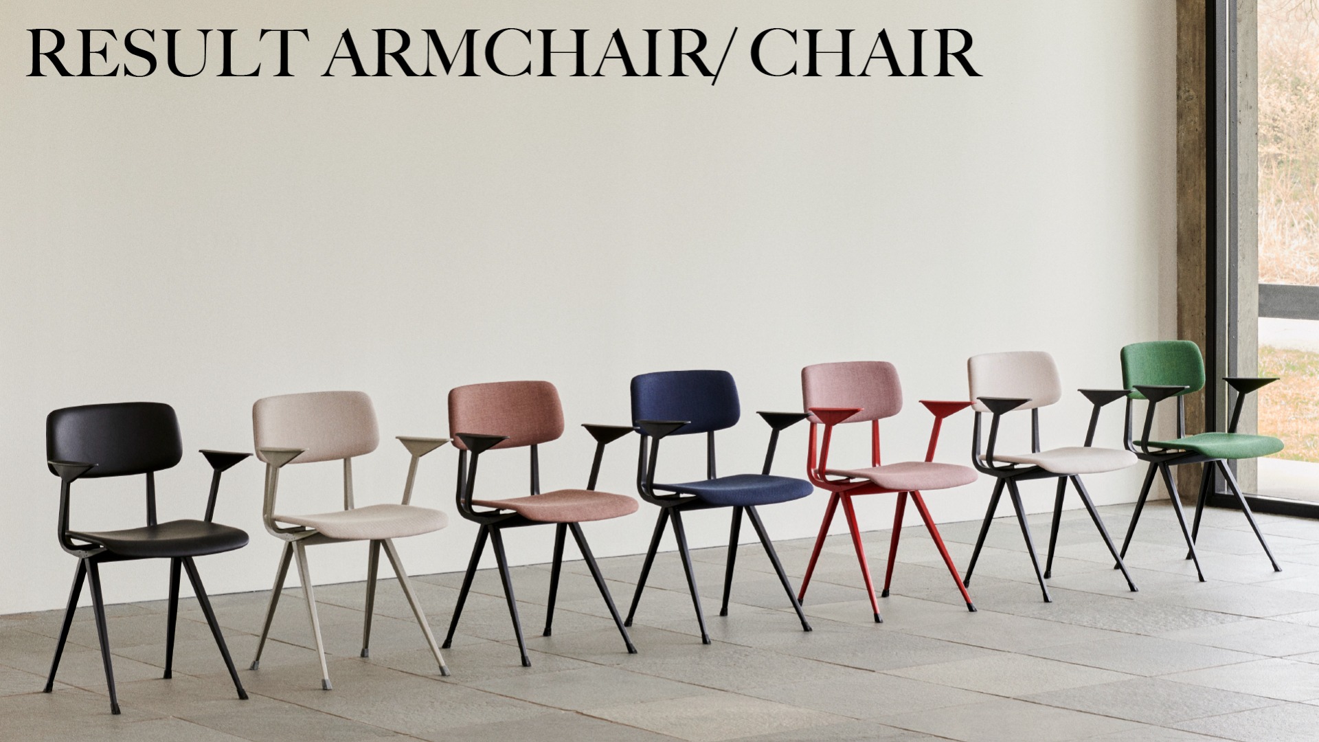 Le fauteuil Result partage la même base en tôle d'acier mince, le siège et le dossier en chêne que le Result Chair original, mais est complété par des accoudoirs surélevés qui apportent un confort et une fonctionnalité supplémentaires au design. Créée à l'origine par Friso Kramer et Wim Rietveld alors qu'ils travaillaient chez Ahrend dans les années 1950, la collection en acier découpé a été relancée par HAY en collaboration avec Ahrend. Il est disponible dans une variété de finitions en bois et de couleurs de base, ainsi qu'une variante avec assise rembourrée et une version entièrement rembourrée proposée dans une large gamme d'options de textiles et de cuir. Toutes les variantes peuvent être coordonnées avec la Pyramid Table, ce qui en fait une configuration de sièges polyvalente pour une utilisation dans de nombreux contextes publics et privés.