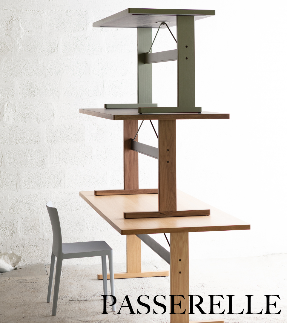 Inspirés par l'esthétique épurée des meubles Shaker classiques, les designers français Ronan et Erwan Bouroullec ont conçu la table Passerelle - une interprétation mise à jour partageant la même simplicité et la même qualité dans un contexte plus contemporain. Avec une construction bien équilibrée et emballée à plat, le plateau de table présente des bords en bois massif et une surface supérieure en placage, stratifié ou linoléum, avec le noyau en Lisocore® - un matériau avancé de haute qualité qui offre une grande résistance tout en étant extrêmement léger et facile à déplacer. La sous-construction est tout aussi robuste et fonctionnelle, avec un cadre en bois massif et une barre transversale en aluminium et en acier qui renforce et stabilise la table. La variété des options de matériaux, de couleurs et de tailles de la table Passerelle amplifie sa qualité multifonctionnelle, la rendant également appropriée pour une utilisation comme cuisine, table à manger ou table de réunion dans les espaces privés et publics.