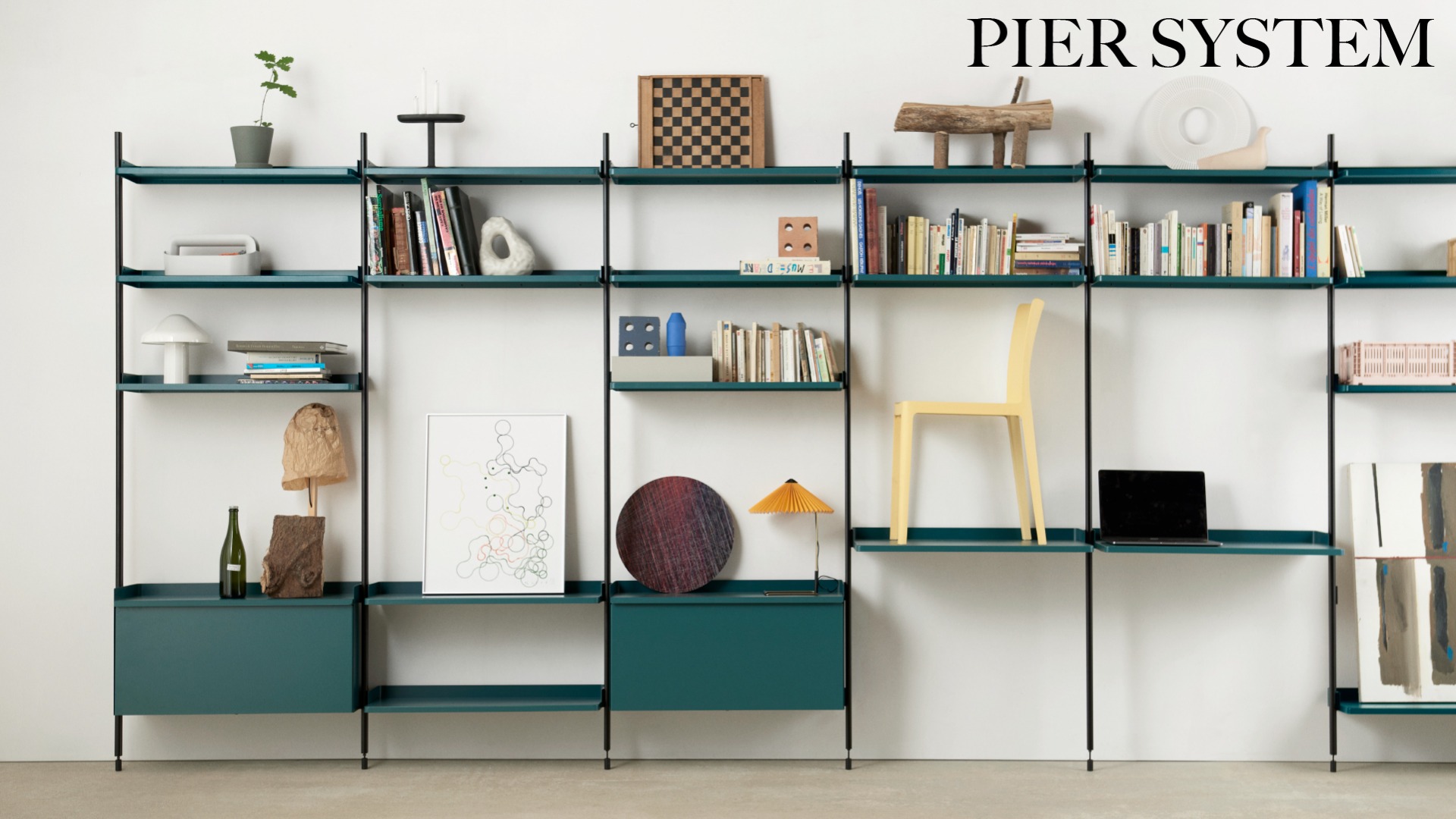 Conçu par les designers français Ronan et Erwan Bouroullec, Pier System est un système de rangement multifonctionnel développé pour s'adapter aux exigences du style de vie moderne. Doté d'un design plat facile à assembler, à reconfigurer et à recycler, la construction simple offre une solution de rayonnage flexible pour organiser et stocker une multitude d'articles. Construit à partir d'aluminium léger et d'acier en utilisant le nombre minimum de composants requis pour créer un système de stockage complet, Pier System est disponible dans une variété de couleurs et de configurations d'ensemble qui peuvent être combinées les unes avec les autres. Les éléments qui font partie de ces configurations peuvent être déplacés selon les besoins et les envies, permettant à l'utilisateur d'intégrer des fonctions de travail, de garde-robe ou d'organisation dans la plupart des pièces et des environnements, des salons et chambres aux halls d'entrée et aux bureaux.