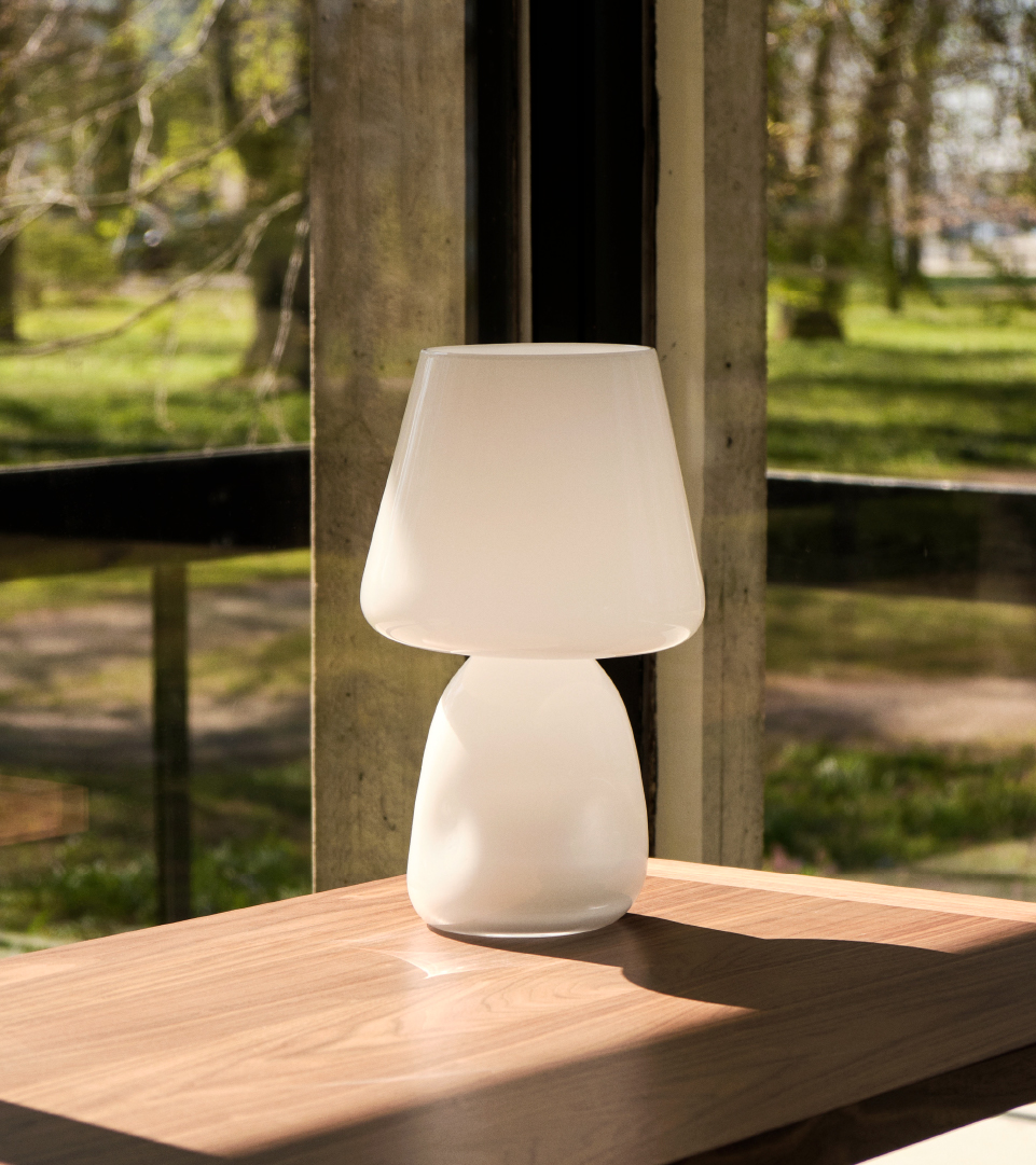 Inspirés par le désir de créer une source de lumière ambiante avec une qualité sculpturale, les designers danois Viola Heyn-Johnsen et Jonas Trampedach ont créé la série Parade Lamp. Composée d'une base carrée et d'un plateau arqué en verre coloré, la forme géométrique fait changer l'expression en fonction de l'angle de rotation de la lampe. Les tailles et les couleurs soigneusement sélectionnées se complètent en hauteur, tonalité et température, créant un effet cohérent qui forme un motif interconnecté lorsque plusieurs lampes sont vues ensemble. Aussi attrayante qu'une collection de sculptures éclairantes, une seule source lumineuse sur une table de chevet ou affichée avec d'autres ornements sans la lumière allumée, Parade combine fonctionnalité et esthétique pour créer une lampe polyvalente et unique. La source de lumière LED intégrée personnalisée, qui peut être remplacée si nécessaire, dispose d'un gradateur en ligne qui permet d'ajuster la puissance lumineuse à différents réglages.