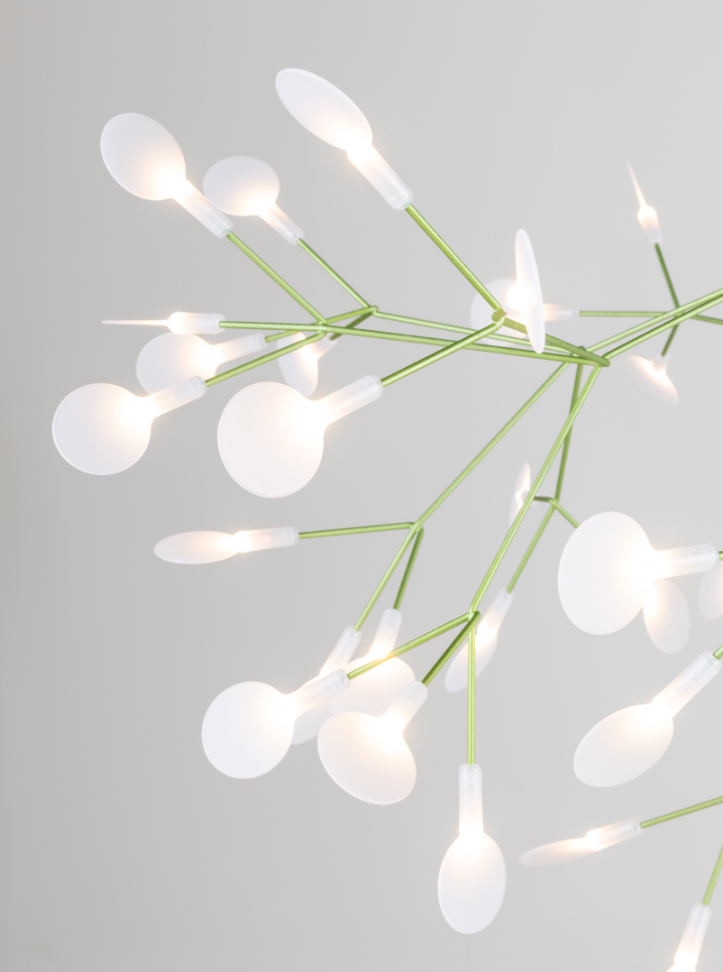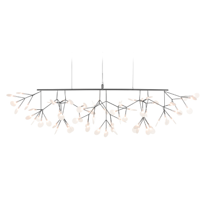 Ne confondez pas le nouveau Heracleum III Linear avec son frère Endless. Regardez attentivement et vous verrez des fleurs s'élever doucement de chaque côté, ce qui rend le Heracleum III Linear parfait pour accrocher au-dessus de longues surfaces, comme votre table à manger ou votre îlot de cuisine. Comme les autres modèles de la famille Heracleum, les branches maigres sont alimentées par Electrosandwich, du studio Marcel Wanders. L'Heracleum III Linear, disponible en quatre couleurs, s'inspire de la plante à fleurs du même nom. Sa floraison figée dans le temps. Cette conception la plus récente de la famille Heracleum est compatible avec notre interrupteur mural sans fil et contient des LED lumineuses ; ensemble, ils offrent un rendement lumineux plus élevé qui crée une lueur chaleureuse.