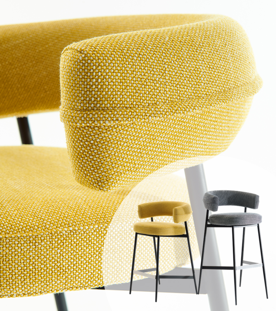 Un tabouret avec un grand impact visuel fourni par le contraste entre le cadre léger et les contours généreux des éléments rembourrés. Disponible en deux hauteurs différentes, c’est une solution idéale pour les îlots de cuisine et pour meubler les espaces publics ho.re.ca. C’est l’expression d’une esthétique reconnaissable, d’un langage vestimentaire et d’un accent mis sur le confort, résumé dans un siège élégant, accueillant et confortable, conçu pour assurer un long séjour tout en profitant d’un petit déjeuner ou d’un dîner relaxant.