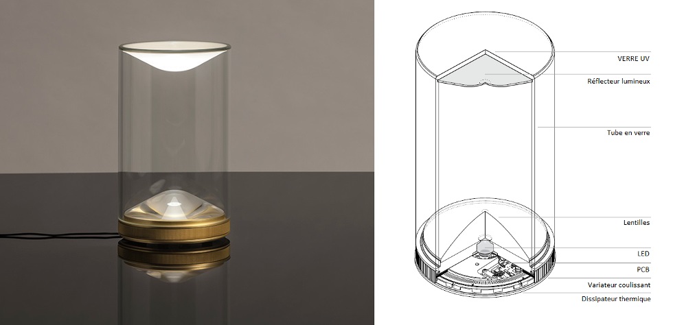 Eva est une lampe de table à lumière indirecte. L'idée était de créer un cône flottant de lumière qui exhale un rougeoiement chaud semblable à la lueur d'une bougie. Eva est composée d'un tube en verre avec une base mécanisée ronde en aluminium. Les LEDs éclairent vers le haut sur un cône réfléchissant. Cette lampe à poser est disponible dans des finitions anodisées : noire, bronze, laiton et argent. Eva est un modèle de précision qui combine la dernière technologie LED avec une compréhension méticuleuse des qualités de lumière.
