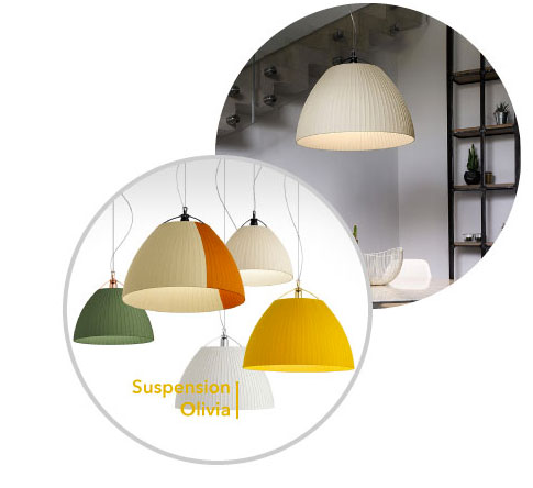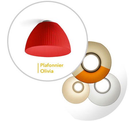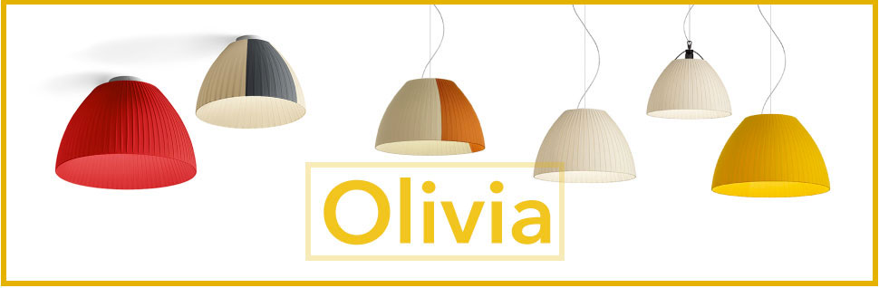 Féminine et malicieuse, Olivia séduit par sa silhouette généreuse et par son pouvoir magnétique de la lumière. L’association de son tissu plissé et de son support rigide moulé en polyméthacrylate ou en polycarbonate translucide exalte les lignes généreuses de la lampe et évite les ombres que crée inévitablement un châssis métallique. Suspension ou plafonnier, Olivia existe en deux tailles et s’habille en tissu plissé monocolore ou bicolore: un style délicat qui revêt de grâce les espaces intérieurs.