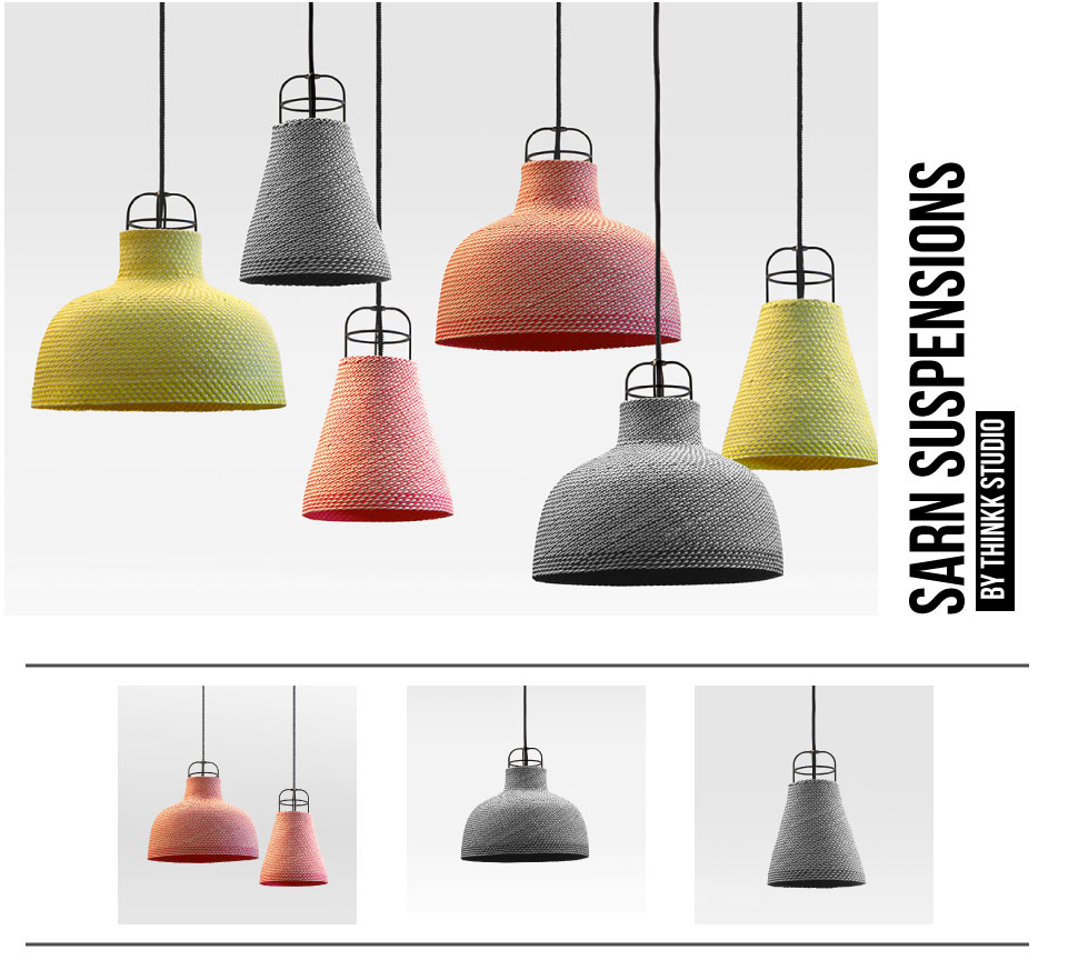 Un design traditionnel thaïlandais, fait main ! Les suspensions SARN, légères et colorées empruntent aux techniques traditionnelles du savoir faire Thaïlandais en matière de tressage. Cette technique est remise au gout du jour par le studio de design « Thinkk » avec un dessin aéré et contemporain. L’abat jour laisse traverser la lumière en la colorant légèrement, ce qui apportera un peu de couleur et de chaleur å tous les intérieurs ! La fabrication s’effectue å la main en Thaïlande, dans une usine respectueuse des conditions de travail.