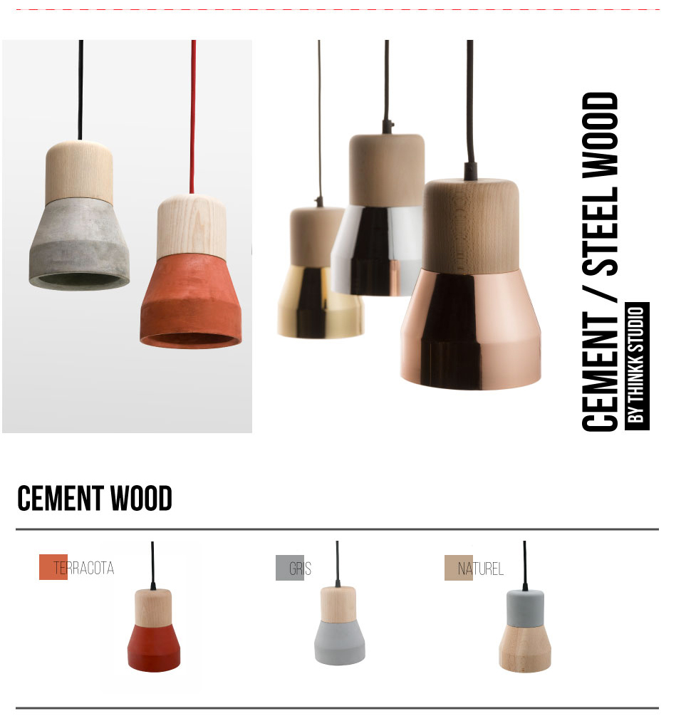 Un design simple et élégant, un focus sur les matériaux Le designer THINKK Studio se joue des oppositions entre un métal froid et robuste, parfaitement équilibré par la douceur et la chaleur du bois Cette suspension est le prolongement de la série Cement Wood.