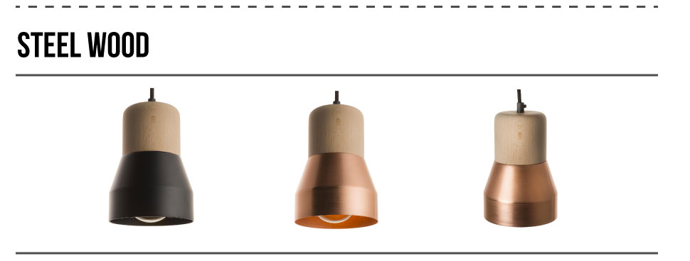 | La Steel Wood Lampe mets le métal à l’honneur !…. Et le marie au bois et au béton.