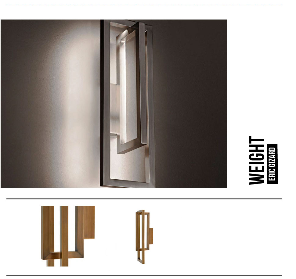 Ses lignes forment une architecture abstraite, remplissant l’espace par son volume et ses vides géométriques. C’est sa radicale opposition au patrimoine existant qui lui permet d’être très visible, sans pour autant faire oublier le décor qui l’entoure. Elle sait aussi disparaitre, en laissant la place à des lignes de Leds, intégrées dans la structure . Contemporaine et lumineuse, cette applique répond aux lieux dans lesquelles elle s’intègre. Qu’ils soient contemporains ou plus classique, son radicalisme et son opposition lui permet de s’adapter à tout type de décor.
