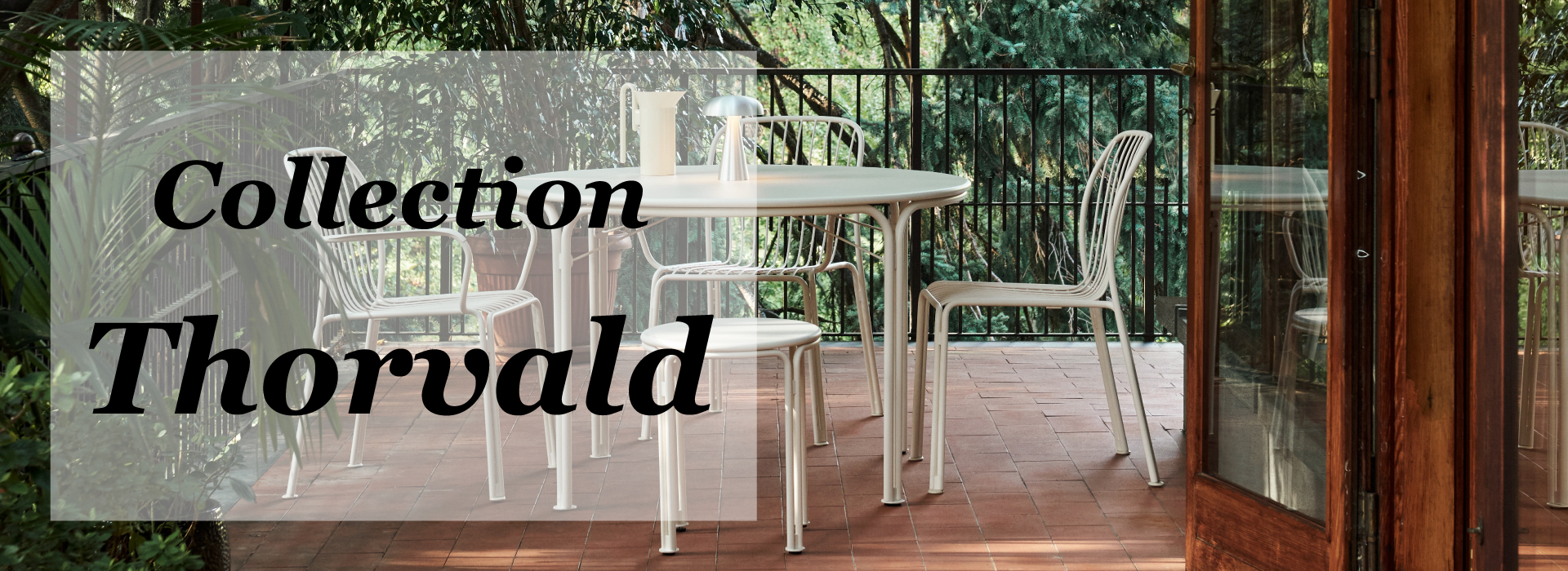 Moderne dans sa fonction et sa silhouette, la collection extérieure Thorvald joue avec des motifs subtils et des motifs classiques et romantiques, tous profondément inspirés et créés pour le musée Thorvaldsen de Copenhague. Une collection de huit pièces composée d'une chaise d'appoint et d'un fauteuil, tous deux empilables et disponibles en deux tailles, d'une table d'appoint, d'une table de café avec un plateau carré ou arrondi et enfin d'une table à manger de plus grande taille, la la collection cherche à célébrer la vie dans n'importe quel contexte extérieur . Décrit par Space Copenhagen comme « une invitation à profiter d'une pause, d'une conversation, d'un verre ou d'un repas en plein air », la collection est à la fois hautement fonctionnelle et confortable pour s'asseoir, se reposer et se détendre.