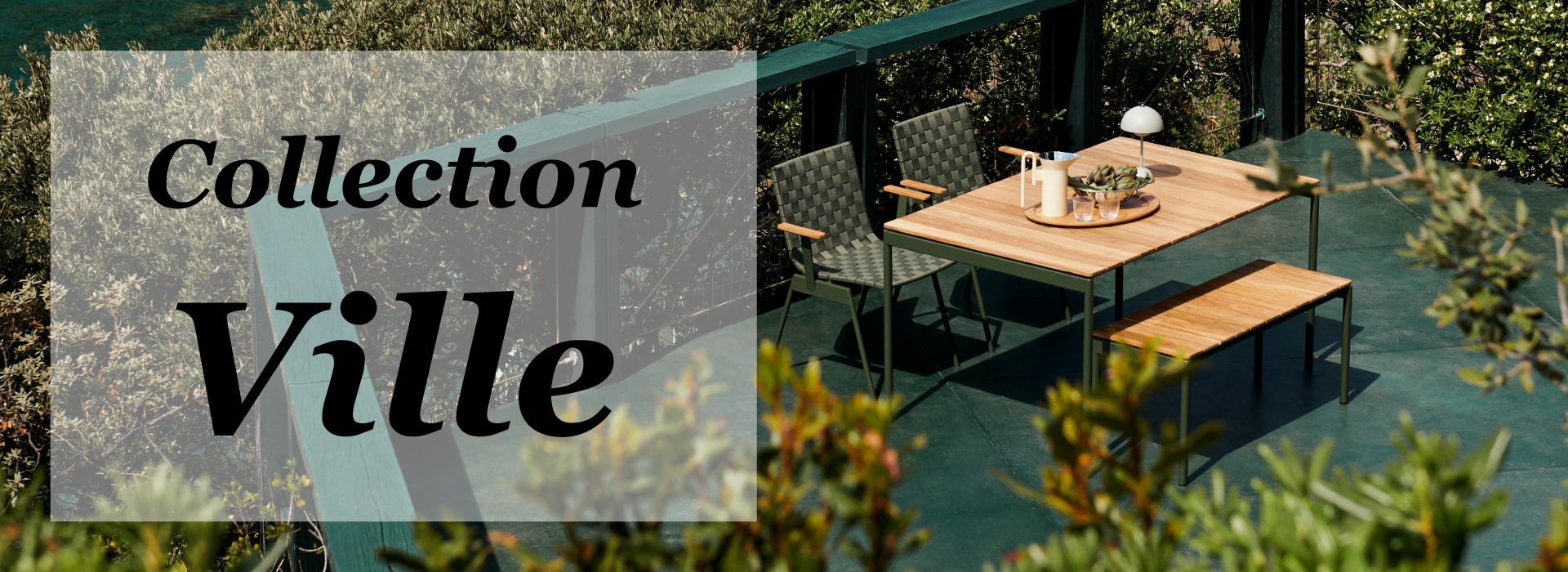 Célébration de la nature et de la matérialité, la collection d'extérieur Ville d'Anderssen & Voll embrasse la vie en plein air avec une combinaison de solidité et de douceur. L'exploration matérielle de Ville joue un rôle central à la fois dans sa fonctionnalité et dans son identité visuelle. Bien que le polyester palmé des chaises et des fauteuils ait été choisi pour son confort, il offre également une esthétique plus détaillée par rapport aux tables et bancs intentionnellement dépouillés.