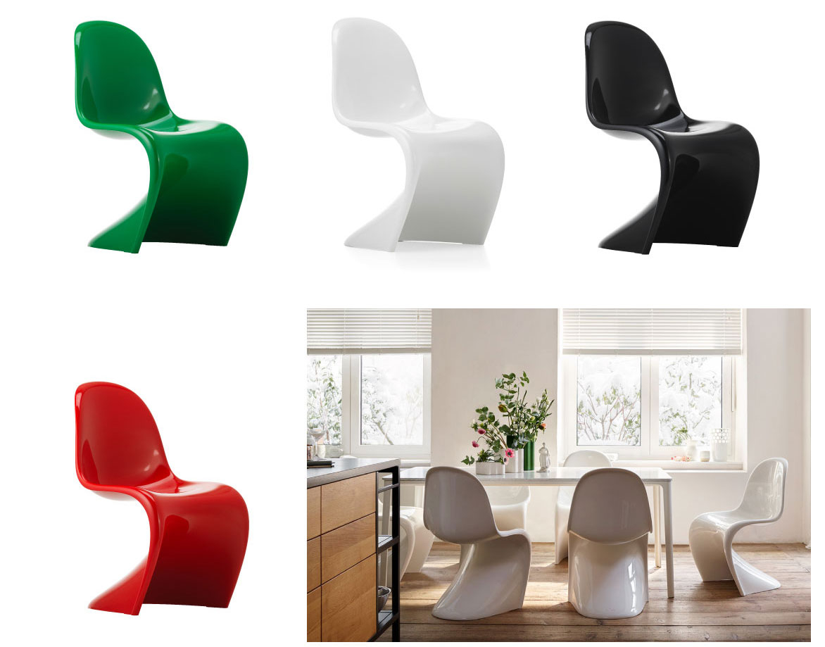 Chaise Panton classique laquée existe dans de nombreux coloris : vert, blanc, noir et rouge classique.