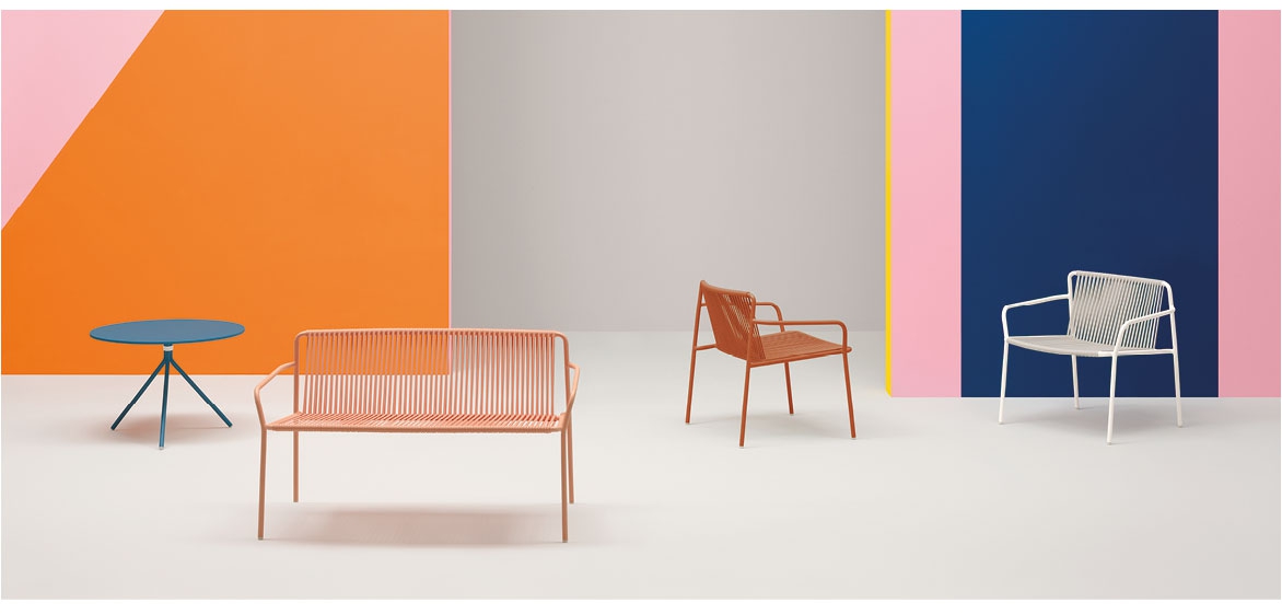 La collection Tribeca s’enrichit de nouveaux sièges capables de mettre en valeur sa nature fraîche et dynamique, colorée et ludique. Un fauteuil longue et un banquette à deux places qui comme la chaise, le fauteuil et le tabouret, s’inspirent des échos réconfortants de la mémoire et réinterprètent de manière moderne les chaise de terrasse claissiques des années soixante en acier entrelacé. |