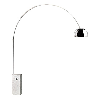 Le célèbre lampadaire Arco des frères Castiglioni pour Flos est devenu au fil des ans une véritable icône du design et le symbole emblématique de Flos dans le monde entier. De la base en marbre blanc de Carrare, jaillit un arc en acier inoxydable, remarquable par ses dimensions exceptionnelles. Les matériaux sont combinés de manière très étonnante : le marbre, matériau traditionnel, s'allie à la modernité de l'acier. Grâce à sa taille XXL, il peut par exemple remplacer une suspension en le positionnant au-dessus de la table. |