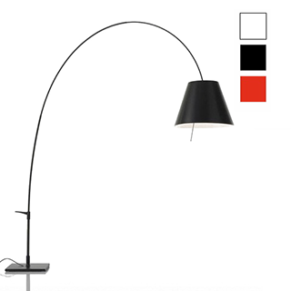 Twiggy est un lampadaire créé par Marc Sadler pour Foscarini. Fruit d'une recherche sur les matériaux composites, Twiggy possède une longue tige flexible et résistante qui permet de décentraliser l'éclairage de sa base. Le grand abat-jour est très léger, il peut remplacer l'usage d'une suspension en éclairant par le haut. |