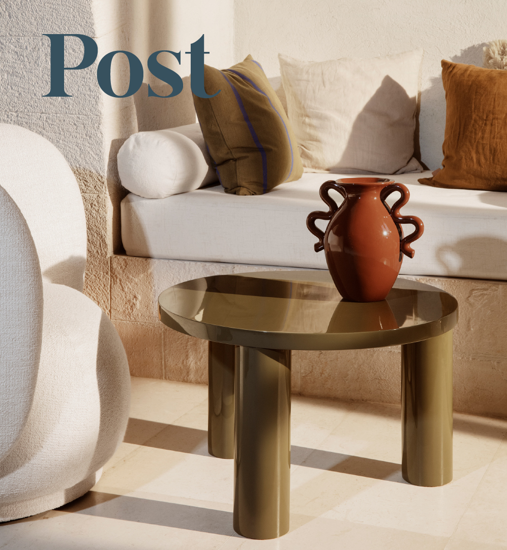 Inspirée du brutalisme, la table basse Post joue avec les formes pour présenter une table basse simple et ronde qui vous attire. Fabriquée à partir de bois certifié FSC™ avec une laque piano brillante, la table distinctive est disponible en différentes couleurs douces et a trois pieds cylindriques robustes.