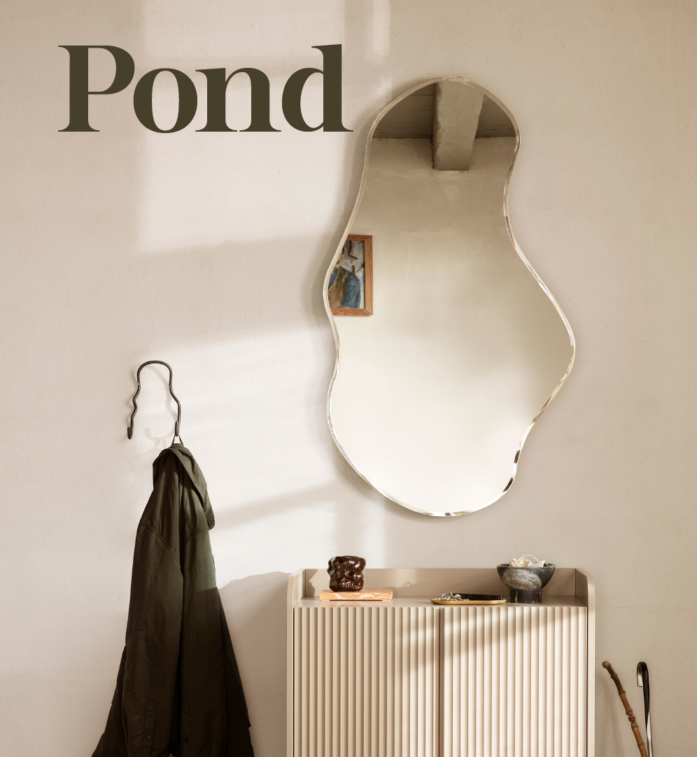 Comportant deux miroirs individuels, la série Pond explore des formes organiques pour un miroir classique avec un cadre en métal. Inspiré par les mouvements fluides de l'eau, le miroir invite des formes ouvertes et fluides dans votre maison, transformant le miroir fonctionnel en une pièce murale décorative. Le miroir peut être suspendu de plusieurs façons afin que vous puissiez trouver l'ajustement parfait pour la pièce et vos besoins.