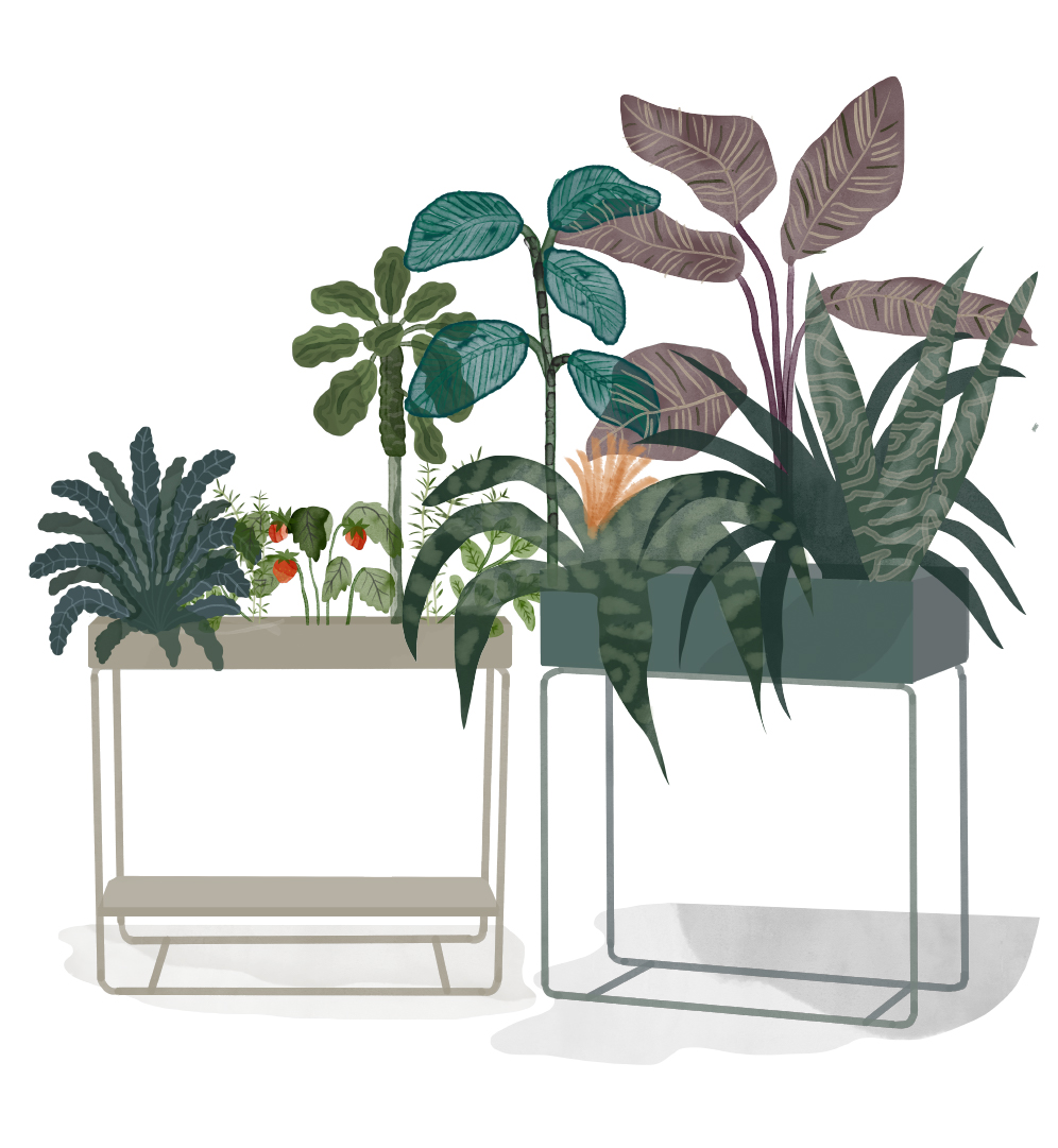 La Plant Box peut être utilisée pour la décoration de toute la maison, comme rangement temporaire dans le couloir ou comme séparateur pour créer des coins confortables dans les grandes pièces. Ils conviennent aux fleurs, aux plantes, aux livres, aux jouets et aux magazines - ou peut-être un peu de chacun. Utilisée avec la série d'accessoires, la Plant Box peut être transformée en un meuble et un rangement polyvalents. Il y a une esthétique élégante et intemporelle dans les Plant Boxes, et le design présente un contraste saisissant et intéressant entre la boîte rectangulaire sur le dessus et les pieds métalliques fins. Les bacs à plantes sont disponibles en plusieurs coloris.