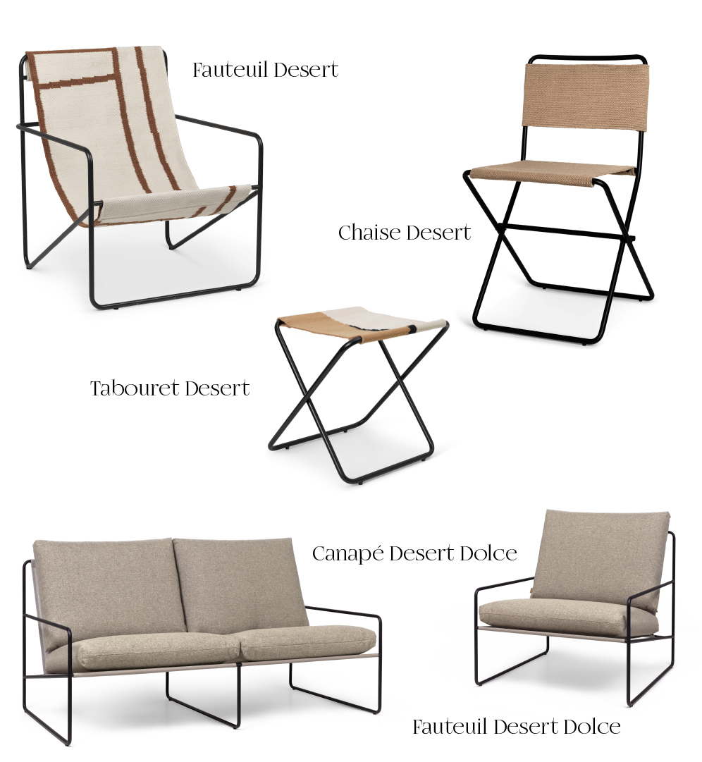 La collection Desert est une ligne responsable de produits fabriqués à partir de fils PET recyclés à partir de bouteilles en plastique post-consommation combinées à un cadre en acier propre et fonctionnel pour la chaise longue et le tabouret. Le processus de fil PET commence par la collecte, le tri et la séparation des bouteilles en plastique post-consommation avant d'être transformées en fil durable qui ressemble à un fil de laine épais. Ensuite, le fil PET est tissé à la main dans des sièges et des housses de coussin. La collection Desert convient aussi bien à une utilisation intérieure qu'extérieure, et après des années de bon usage, les produits sont faciles à démonter pour le recyclage. L'été est synonyme de détente et de temps de qualité passé dans un cadre extérieur serein. Créez un coin salon accueillant avec le canapé Desert, où il y a beaucoup d'espace pour bronzer, lire des livres et recevoir vos amis et votre famille. Avec le temps imprévisible à l'esprit, le canapé Desert est conçu pour une utilisation en extérieur et est complété par des coussins de canapé confortables qui sont à la fois résistants à l'eau et aux UV.