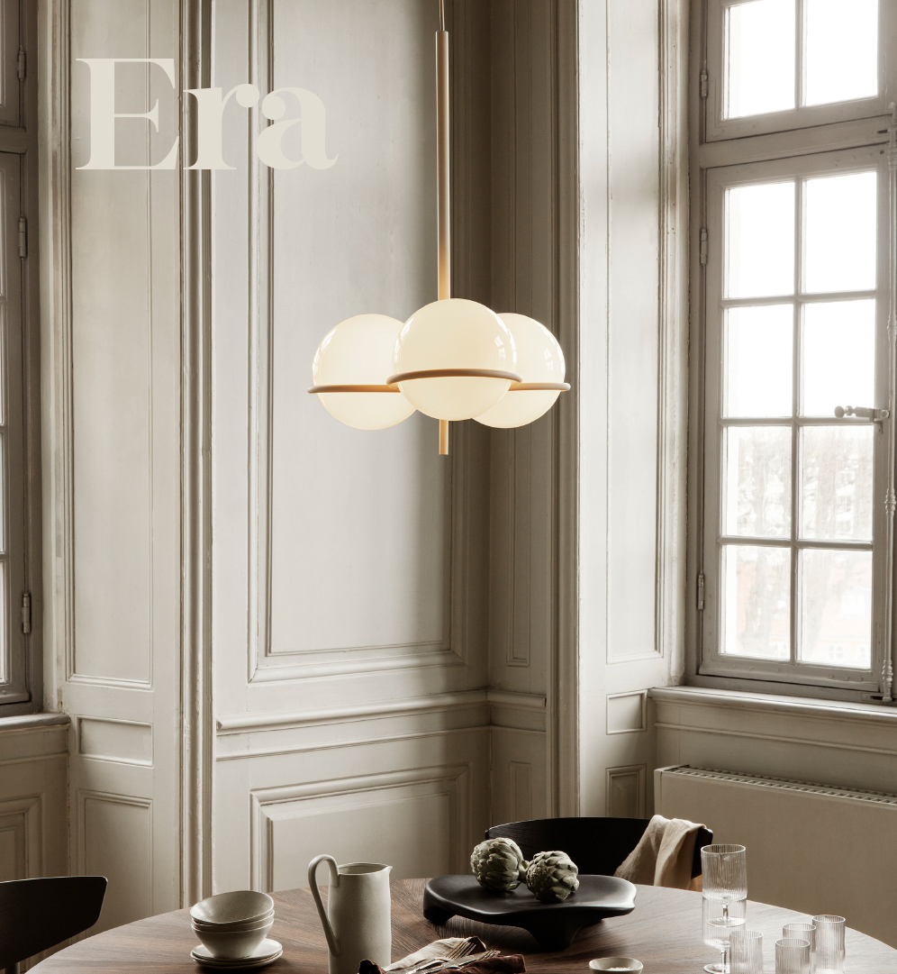 Le lustre Era est une lampe élégante inspirée des lignes claires et des formes géométriques du mouvement Art déco des années 20. Avec trois globes en verre opale reposant sans effort sur une structure légère en fer enduit de poudre, le lustre a une expression féminine et délicate, qui fait un clin d'œil à l'époque distinctive et représente tout ce que nous aimons du design intemporel et de la simplicité de construction. Laissez le lustre Era orner votre couloir, vos escaliers ou éclairer la conversation à table.