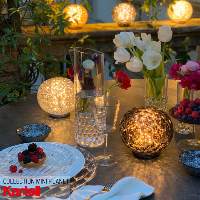 Tokujin Yoshioka présente son premier projet d'éclairage pour Kartell. Planet est une sphère qui vit des réfractions, avec une série complexe de surfaces et de réflexions. Elle fait partie d'une série complète de lampes caractérisée par la forme particulière du diffuseur. Cette lampe à poser possède une forme ovoïdale et est réalisée avec un matériau transparent taillé en facettes, à l’intérieur et à l’extérieur, qui crée un éclairage scénographique. Avec sa finition cristal, elle s'adapte à différentes décorations et apporte sa touche design !