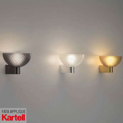 L’enchantement de l’applique Fata est créé par l’abat-jour et une nouvelle technologie de gravure et de moulage qui permet de réfléchir la lumière de mille manières en fonction de l’angle de vue. Fata s’allume et se cache immédiatement dans de surprenants jeux de lumière, comme une clochette magique qui apporte mystère et joie à la maison. L’applique en forme de bol est disponible en trois couleurs - ambre, fumé et transparent.