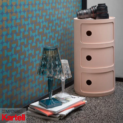 Componibili est un élément de rangement pensé par Anna Castelli Ferrieri en 1968 pour Kartell. Ces éléments ont été conçus afin de répondre à diverses exigences d'utilisation et pour trouver place dans toutes les pièces de la maison, salle de bain, chambre, salon etc.. Flexibles, fonctionnels, pratiques, les éléments sont produits depuis plus de trente ans et ont reçu de multiples marques de reconnaissance pour la valeur et l'innovation du projet et sont aujourd'hui exposés au Museum of Modern Art de New York et au Centre Pompidou à Paris. Disponible en sept coloris différents.