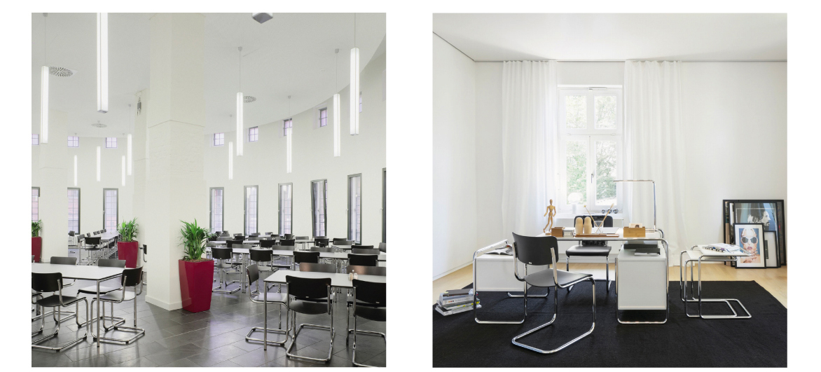 Parmi les modèles de meubles en tube d'acier, les chaises en porte-à-faux S 32V et S 64V est particulièrement polyvalente. Il est à l'aise dans divers univers du design et s'intègre dans un design d'intérieur résolument moderne ainsi que dans un mélange diversifié qui laisse place à différentes époques et styles. L'assise et le dossier en bois massif courbé avec osier représentent la tradition, et le cadre représente le présent et l'avenir. Grâce à sa polyvalence, elle est devenue une chaise en porte-à-faux la plus vendue et l’est toujours aujourd'hui.