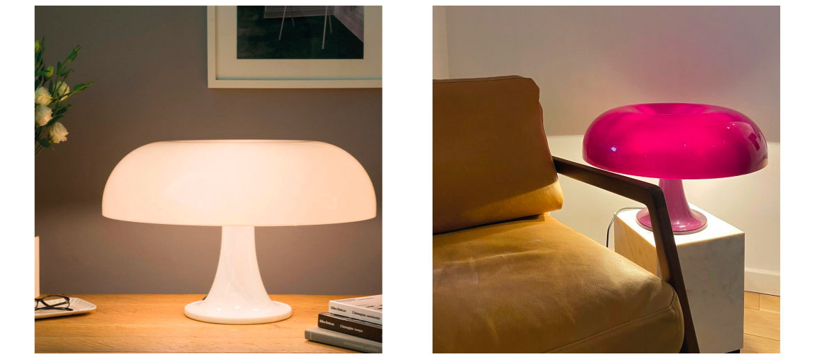 Nessino est l'édition actualisée et revisitée de la célèbre lampe Nesso qui avait remporté le 1er prix du concours studio à Milan en 1965. Cette petite lampe est un must have pour les amoureux du design. On adore la forme champignon, époque des années sixties où les codes sont bouleversés, les couleurs explosent, les formes se diversifient.