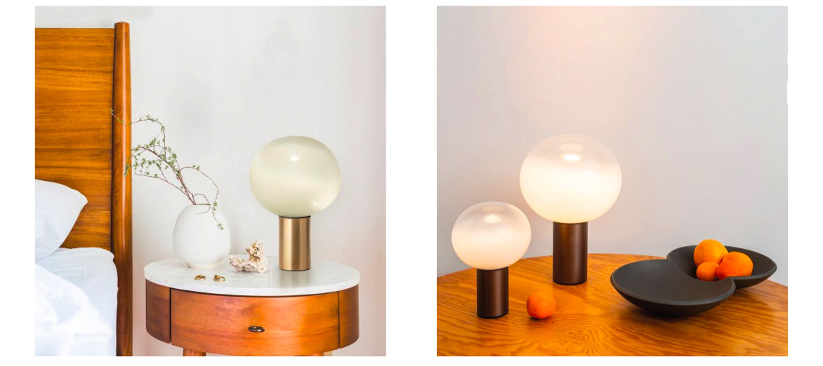 Lampes en verre qui s’articule en plusieurs dimensions en version lampe de table et lampadaire.Matériaux : corps en aluminium extrudé, diffuseur en verre soufflé. Spécificités : le verre soufflé laiteux avec une nuance cristal permet d’obtenir une lumière douce et localisée sur le plan ou sur le mur ainsi qu’une lumière plus performante vers l’espace.