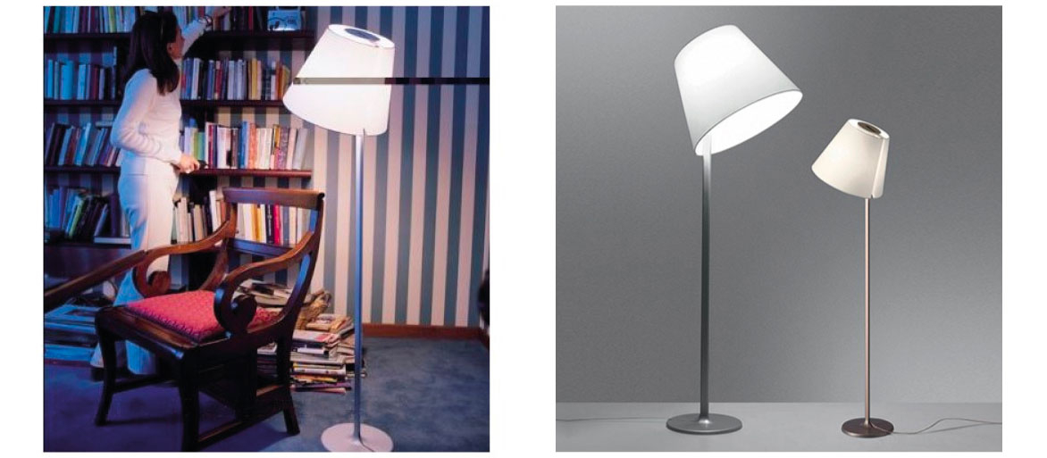 Melampo est un lampadaire dessiné par Adrien Gardère pour Artemide. Grâce à sa finition originale, il permet d’obtenir deux esthétiques différentes : l'abat-jour est de couleur gris aluminium lorsque la lampe est éteinte et il devient blanc lorsqu’elle est allumée. Le diffuseur présente une fente qui permet de l'orienter dans trois positions différentes. Ce système offre le plaisir de varier les éclairages avec facilité et selon les envies.
