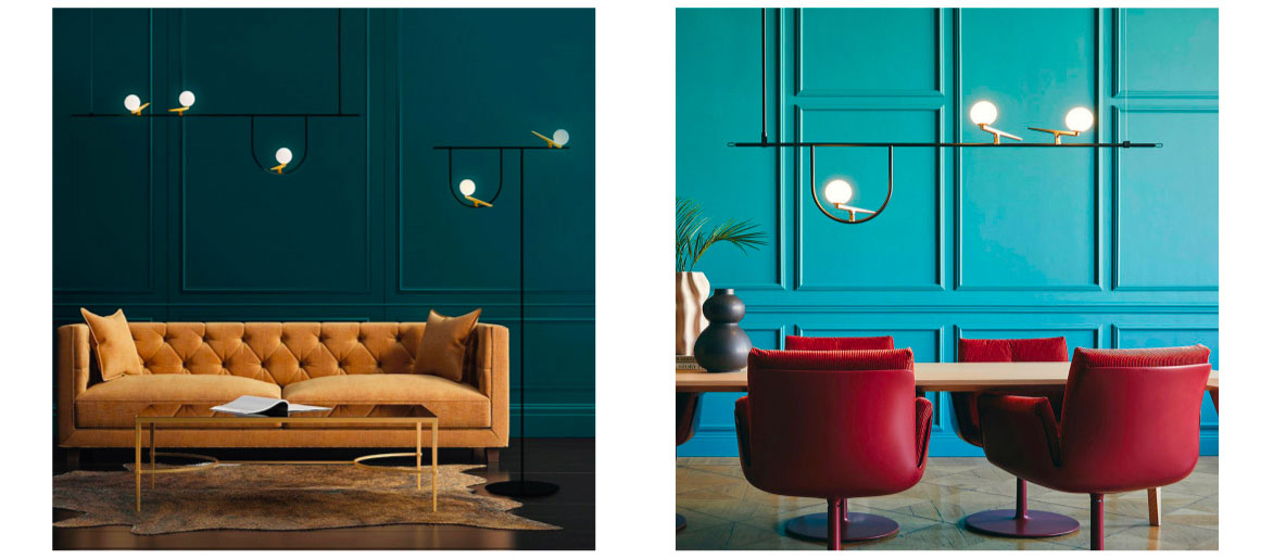 Yanzy est une collection de luminaire de la marque Artemide. Dans une synthèse entre tradition et innovation, Yanzi est une composition légère de signes graphiques : un équilibre de structures comme des branches ou des perchoirs sur lesquels s’appuient plusieurs figures stylisées pour décliner des versions et des qualités de lumière. Ce sont des hirondelles iconiques dont le corps est en cuivre brossé, avec la tête comme une sphère en verre blanc qui renferme la lumière, libres ou renfermées dans des cages en verre.