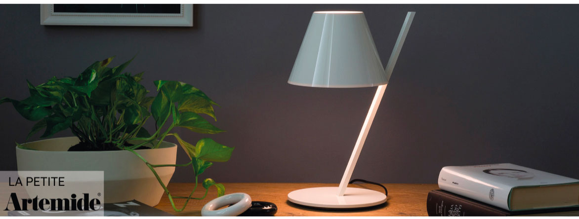 Un archétype, abat-jour en équilibre sur une tige inclinée. De simples éléments unis d’une manière élégante pour étonner par leur composition géométrique correspondent à des formes élémentaires associées à des matières différentes pour des raisons technologiques.Le savoir-faire d’Artemide s’exprime même dans une lampe apparemment si simple et essentielle.