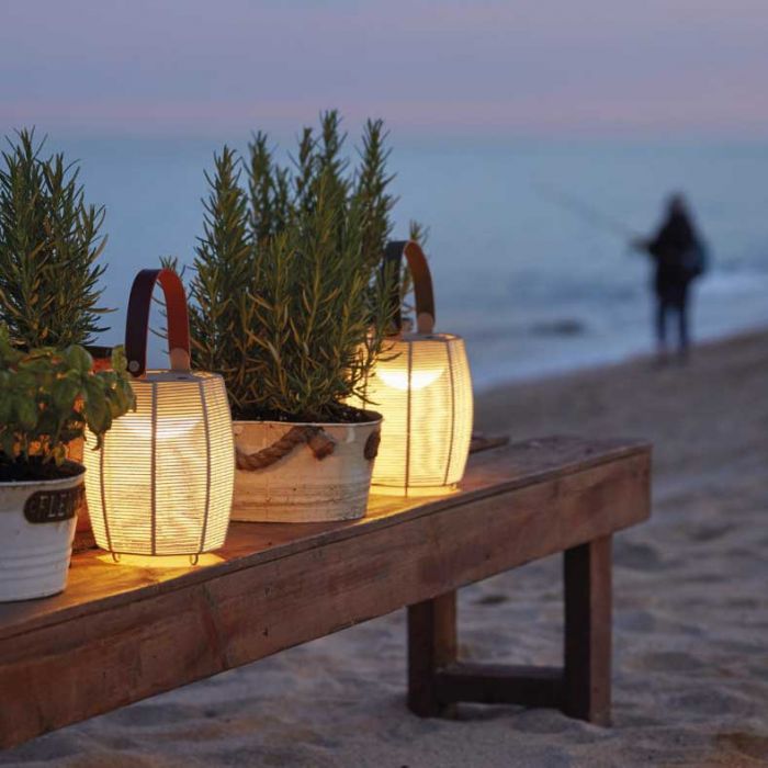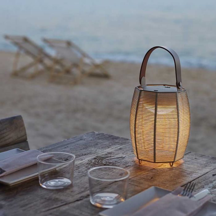 Tanit est une lampe de table portable et rechargeable, à la lumière douce, diffusée à travers un écran tissé à la main avec du fil de coton. En raison de sa légèreté, de sa taille et de son autonomie, la lampe Tanit peut avoir différentes applications tant dans le secteur domestique que sur les terrasses de restaurants et d'hôtels. Sa portabilité nous permet de faire quelques pas de plus et de transformer les espaces extérieurs en zones de tranquillité et de qualité de lumière.