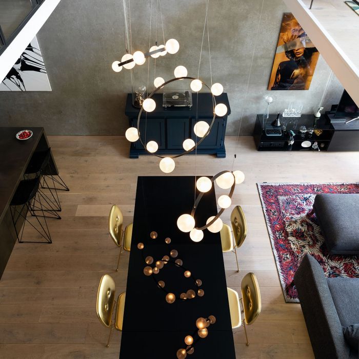 Hubble Bubble, conçu par Marcel Wanders, vous ramène à la liberté de souffler des bulles et courir pieds nus en plein air. Cette suspension évoque un moment où l'esprit vif est libéré, seulement pour retrouver son chemin avec un souvenir éternel. Ces souvenirs sont symbolisés dans chaque élément de la bulle Hubble. Les bulles de verre sont disponibles en versions irisées à l'huile et givrées. La bulle peut être suspendue horizontalement et verticalement. La liberté est dans l'air...