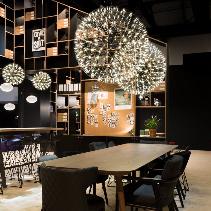 Les lumières Raimond : des sphères parfaites d'ingrédients mathématiques ponctuées de minuscules lumières LED. Le designer Raimond Puts n'était pas seulement intrigué par la forme du dôme géodésique, mais aussi par le mystère des nombres premiers. Ce n'est pas un hasard si la dimension de toutes les lumières Raimond ressemble à un nombre premier. Le résultat de la perfection mathématique, qui fait entrer le ciel étoilé dans votre maison.