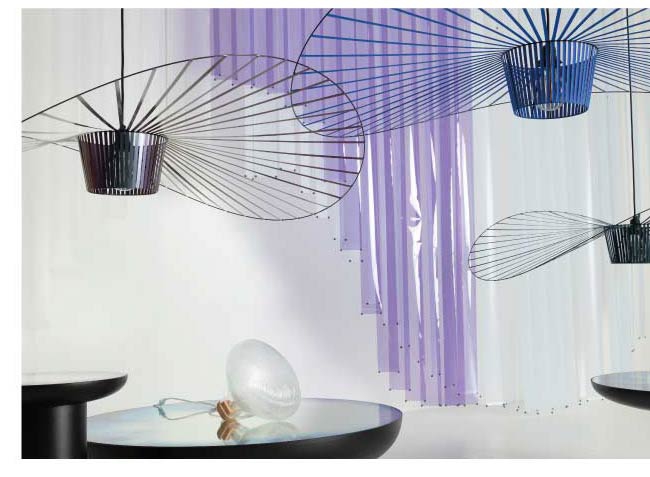 | Vertigo appartient à la première collection de Petite Friture. Dès son lancement, il suscite l'entousiasme des professionnels du design et du public. Rossana Orlandi l'expose alors dans sa galerie milanaise, puis Vertigo intègre les collections permanentes du Moma, du Cnap et du Musée des Arts Décoratifs à Paris. Ce succès s'explique pour le pari pris ambitieux de Petite Friture : éditer une lampe de 2m de diamètre. Un véritable défi technique pour une taille peu commune qui transforme alors les codes du design. Depuis, Vertigo s'est imposé comme une lampe iconique qui habille de sa ligne graphique les espaces. | ||