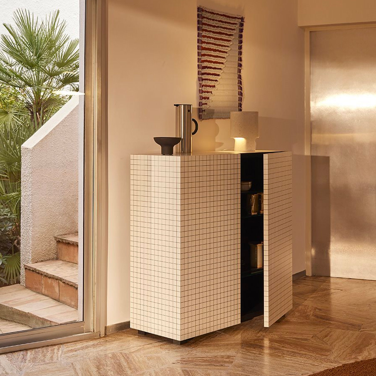 Quaderna - la collection de meubles Istogrammi di Architettura (Histogrammes d'architecture), conçue par Superstudio entre 1969 et 1972 - voit l'ajout de trois nouvelles pièces : le miroir, un meuble de rangement pour le salon et un buffet de service pour la salle à manger.