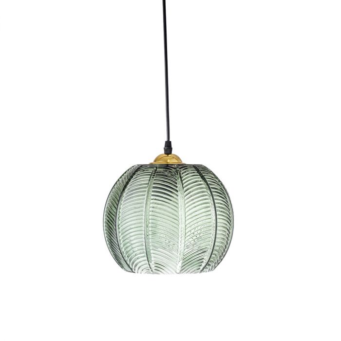 Créez une ambiance exotique avec cette lampe à suspension Adar. Le verre vert foncé est rainuré pour simuler des feuilles de palmier, créant une atmosphère très exotique, surtout lorsqu'il est orné d’éléments dorés.