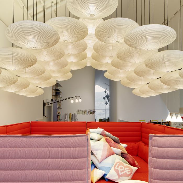 Les Akari Light Sculptures (1951) d'Isamu Noguchi (1951) sont une série de luminaires faits main en papier washi traditionnel par des artisans japonais. « La magie du papier retransforme l'électricité froide en la lumière originelle – le soleil. » (Noguchi)