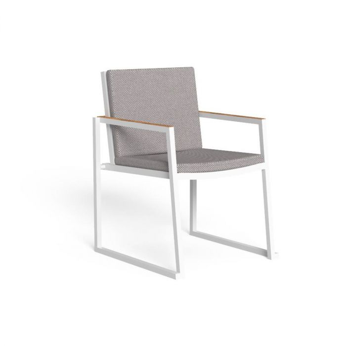 Associant parfaitement aluminium et bois, le fauteuil de repas de la collection AlabamaAlu est simple sans être banal. L’assise confortable en mousse quick dry foam, revêtue de tissu facilement déhoussable et lavable, est soutenue par des sangles élastiques synthétiques, spécialement réalisées pour les extérieurs. Empilable et léger, ce fauteuil est idéal pour compléter une zone repas de jardin.