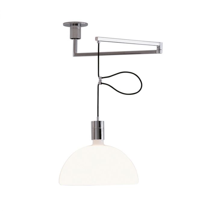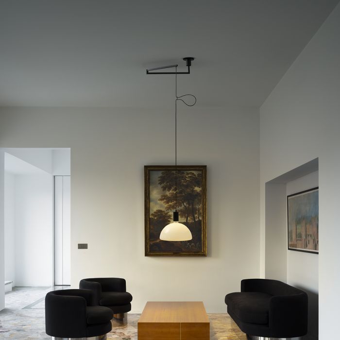 La collection Albini AM/AS représente la philosophie rationaliste de l’architecte milanais. Un design 1969 qui combine les formes linéaires avec l’extrême qualité des matériaux utilisés, comme le verre soufflé des diffuseurs. Le but est de gérer les différents volumes de l’espace avec un seul design : plafond, mur, sol et table.