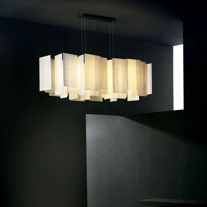 Alexandra est un nouveau concept de lampe, créé par des feuilles de fibre de verre en chevauchement, donnant lieu à une lumière captivante à la fois légère et transparente. Conçu par Enrico Franzolini, Alexandra apporte ce design dans le monde du business, en utilisant de plus grandes feuilles pour construire une lampe avec une présence théâtrale puissante, mais qui reste gracieuse et aérée. Cette version est parfaite pour les grands paramètres tels que les halls d'hôtel, les salles de réunion ou les lieux de rassemblement.