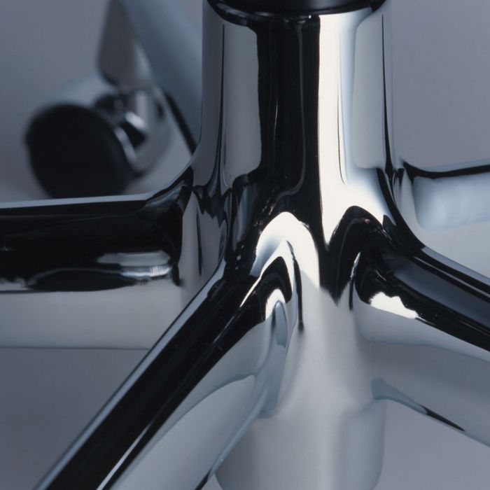 Piètement : à cinq branches en aluminium injecté polie. Roulettes souples pour sols durs