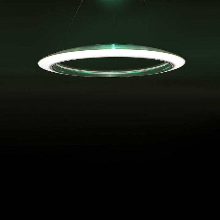 Une histoire qui va au-delà de l'objet lui-même. Ameluna allie beauté et intelligence. Grâce à une forme transparente et une lumière dynamique, il crée d'innombrables scénarios. L'interaction entre des formes pures et un volume asymétrique déclenche une tension dynamique et profondément émotionnelle. Ameluna dévoile un système optoélectronique de pointe intégré dans le cadre transparent. Un anneau fait d'un polymère thermoconducteur innovant, qui est soudé avec le bloc optique, soutient la bande LED et est dissimulé dans le profil inférieur, afin de préserver la pureté de la forme. Le corps transparent permet à la lumière d'être à la fois directe et partiellement réfractée.