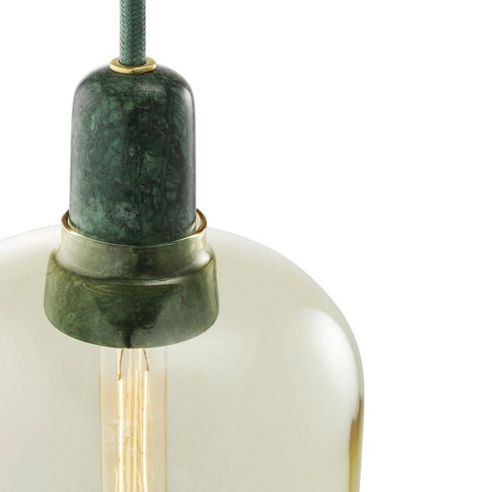 Amp est une gamme de petites lampes inspirées des anciens amplificateurs à lampes des années 1960. Les formes uniques et les matériaux classiques du marbre et du verre ajoutent une touche nostalgique et en même temps contemporaine Amp. L'ampoule décorative émet une lueur étonnante à travers les abat-jours en verre or / vert et fumée / noir, tandis que l'opacité du verre blanc / blanc met en valeur la forme de la lampe, la faisant apparaître comme une silhouette esthétique pure et fantomatique.