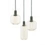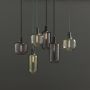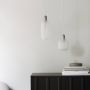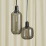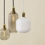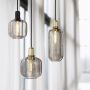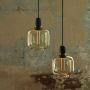 Les suspensions en verre doré sont fournis avec un cordon textile vert de 4 m et un baldaquin noir; les suspensions en verre fumé sont pourvues d'un cordon textile noir de 4 m et d'un baldaquin noir et les suspensions en verre blanc sont fournis avec un cordon textile blanc de 4 m et un baldaquin blanc.