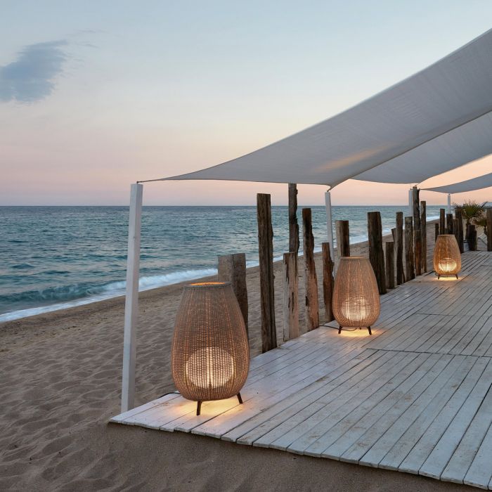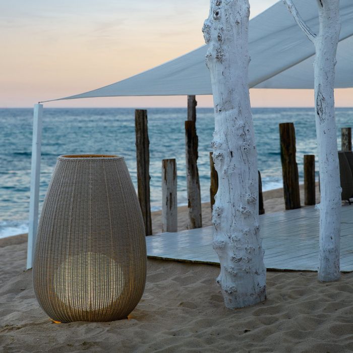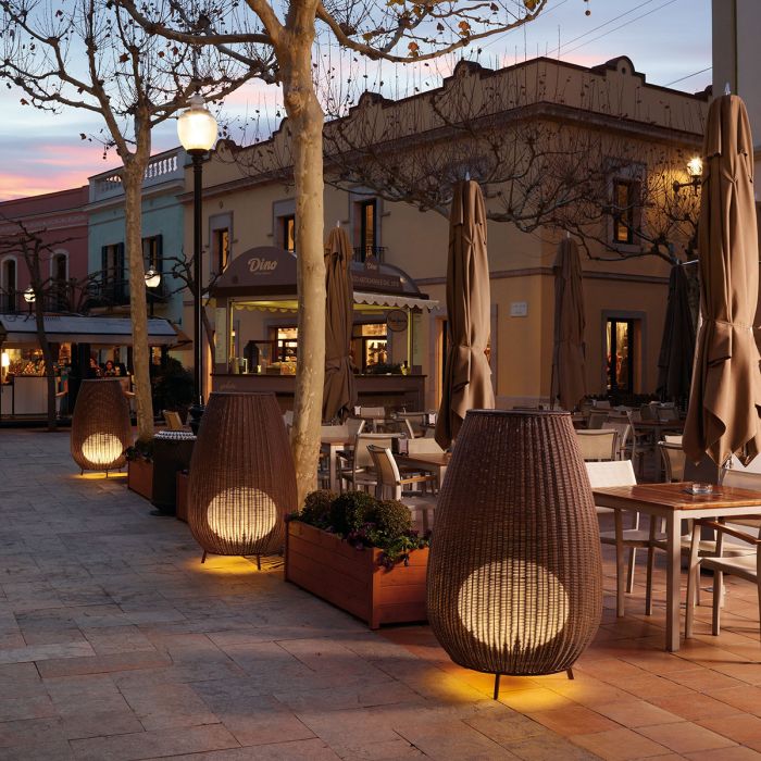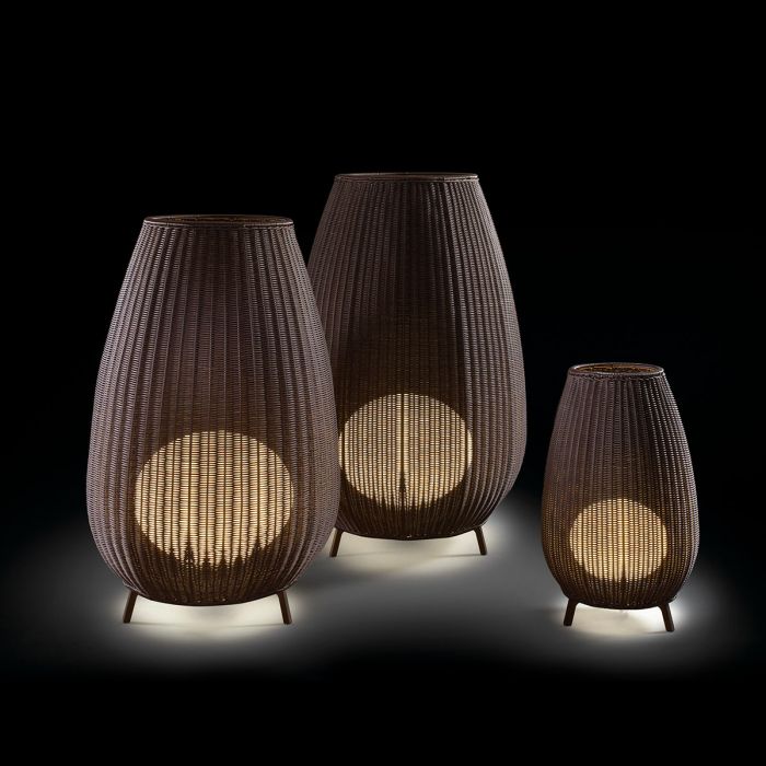 Le lampadaire Amphora est une création design pour votre terrasse ou votre jardin. La pièce centrale est un abat-jour tressé en forme d'amphore. Bover emploie pour le tissage un matériau synthétique sur une base de polypropylène, à la fois étanche et résistant aux U.V. Un diffuseur interne de couleur blanche opaline permet de diffuser une lumière uniforme. Le lampadaire Amphora apportera une touche chaleureuse et tendance à votre extérieur.